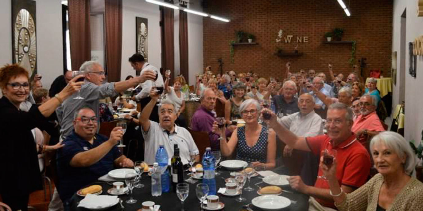 En 2019 me invitaron a Alcalá a conocer su animado Club de Cocido que luego pude adaptar a AUDEMAC y en la foto abajo se encuentra Juan en medio de la primera mesa levantando la copa en alto para brindar por el Cocido.
