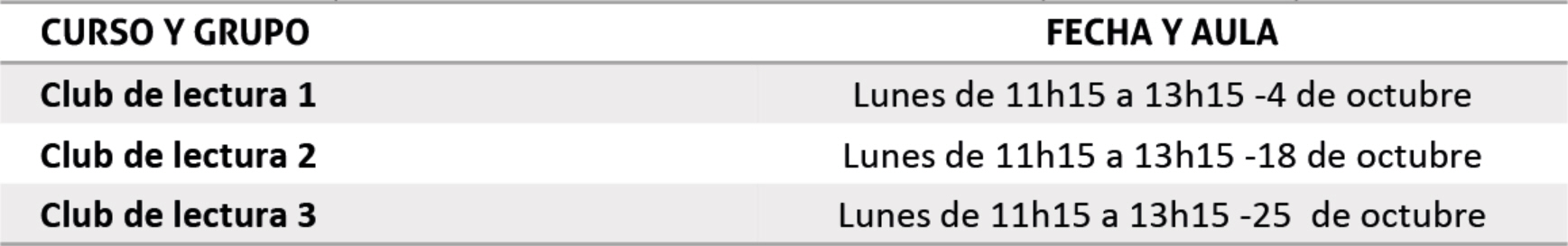 Continuamos con los tres Clubs de Lectura cuyas sesiones serán los días 8,15 y 22 de noviembre.