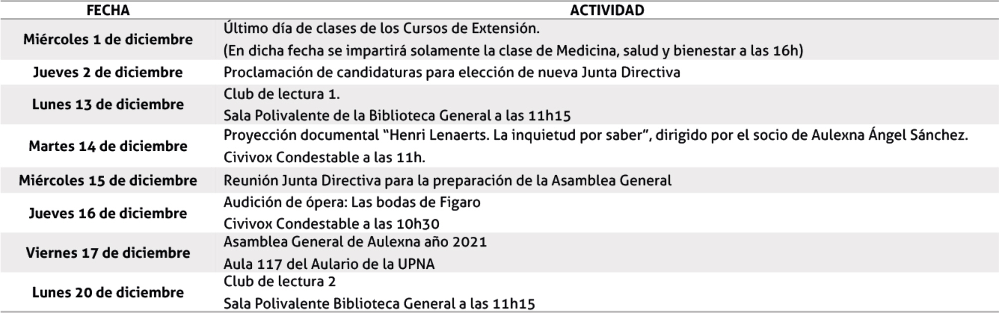 AULEXNA · Programación octubre, noviembre y diciembre de 2021