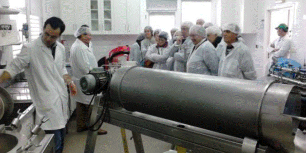 En la empresa fuimos recibidos por su presidente, quien antes de comenzar el corrido por la planta, nos introduce en los productos y sus aplicaciones dentro del mercado mundial de la producción de alimentos, siendo una empresa que tiene el 15% del mercado mundial, con una producción anual de 7.000 toneladas Sus plantas de producción, localizadas en España ( Porriño) y en Filipinas, se basan en tecnología de desarrollo propio.